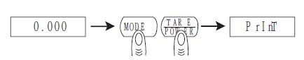 第1步 按下TARE鍵,再按MODE鍵,同時放開兩個鍵,天平顯示“P R INT ”。