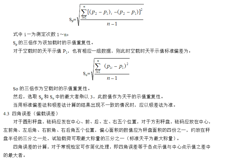對于重復性測試的加載載荷,計算出每次的加載示值與空載示值之差(P2-P1),共有n個數據(n正好等于重復性測定次數),則此時的重稱示值標準偏差為