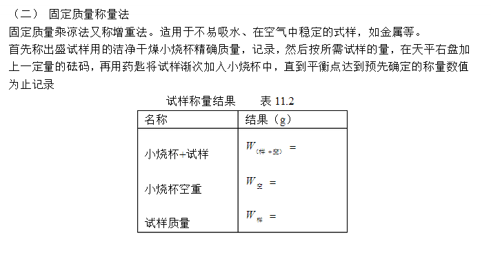 易于吸水、易于氧化或易于與CO2反應的試樣,必須采用差減法。