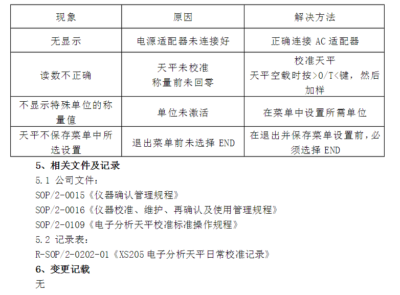 4.4.4 填寫《XS205電子分析天平使用記錄》。 4.4.5 若當日不再繼續(xù)稱量,則關機。 4.5 校準
